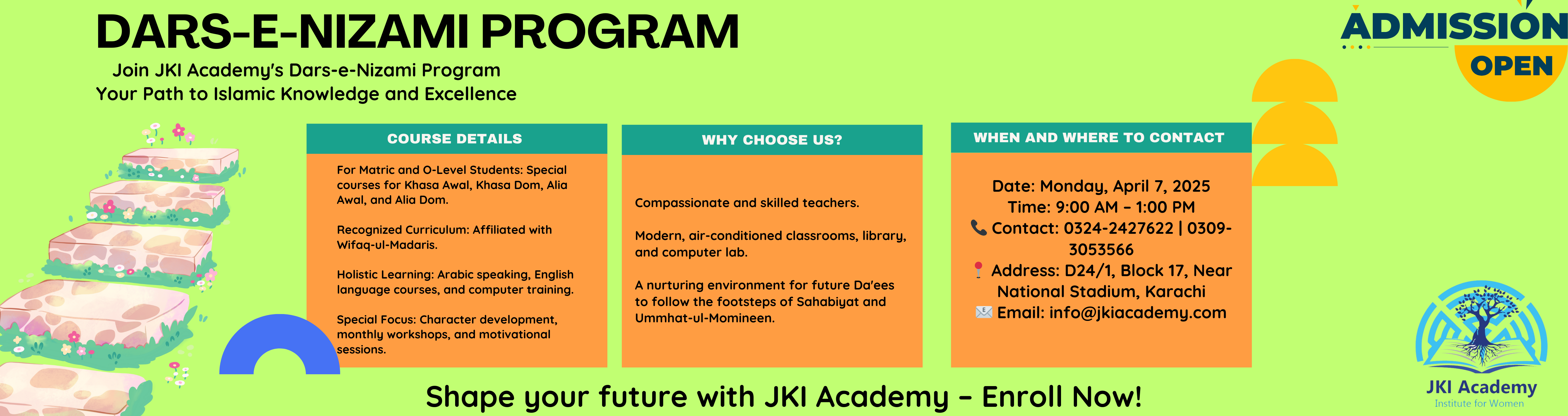 The journey that starts from the establishment of JKI academy till today, truly reflects the great help and victory from Allah Almighty and the never ending struggles of sincerely dedicated educators. Although the path to success is paved with hardships, but when the focus is Allah, vision is upon gaining reward from Allah, and dreams are of eternal delight of meeting Him, then even the desert serves as a pleasurable oasis.