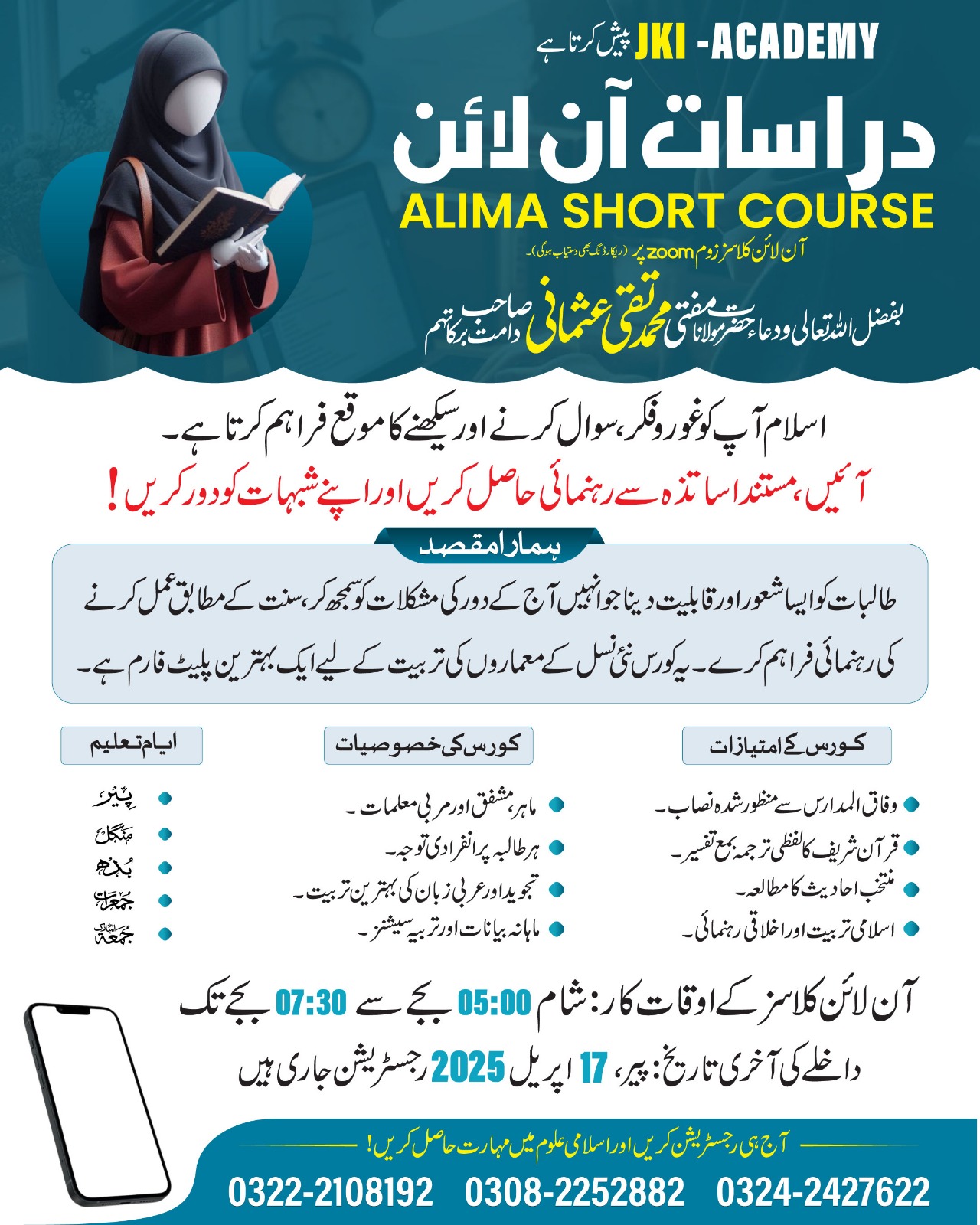 JKI Academy, a dedicated Islamic institute for women, invites you to enroll in our Alima Short Course – a structured program designed for sisters seeking authentic Islamic education.