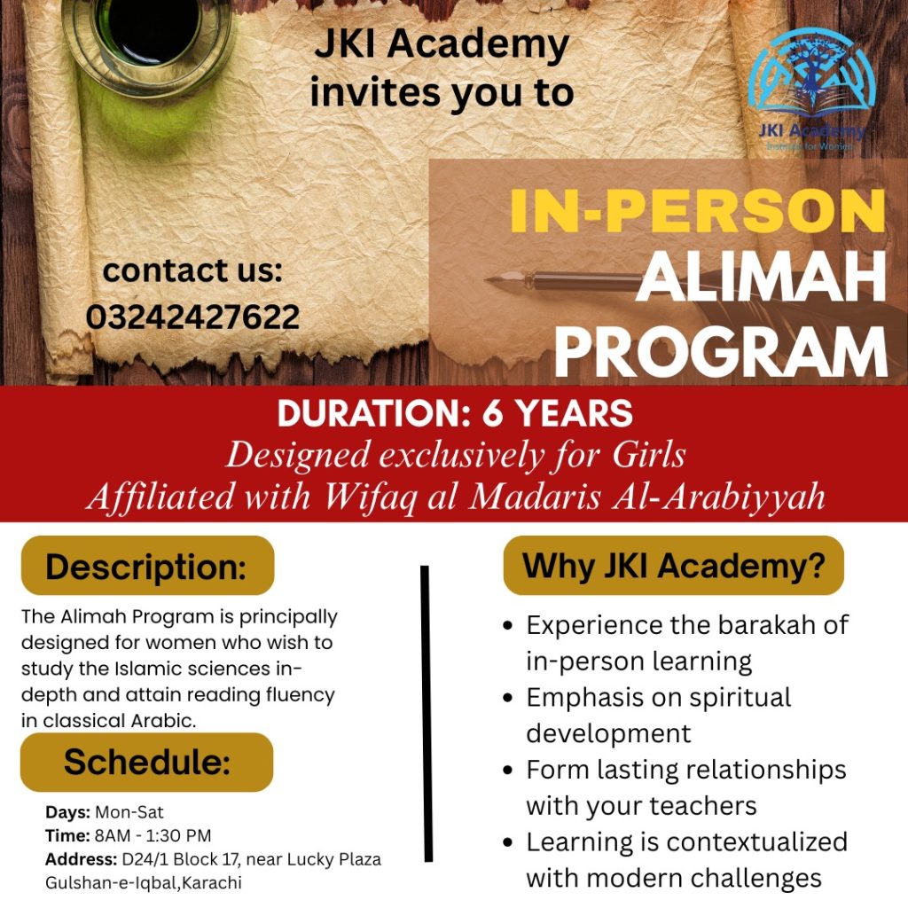 Courses 📢 Admissions Open at JKI Academy! 📢  Empowering Women with Islamic & Academic Excellence! JKI Academy, a dedicated Islamic institute for women, is…AdminMay 4, 2025