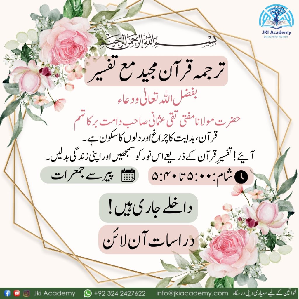 Courses 📖 Darasat – Online Quran Translation & Tafseer Course Deepen your understanding of the Holy Quran with Darasat, JKI Academy’s online course focused on…AdminMay 16, 2025