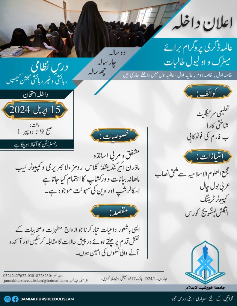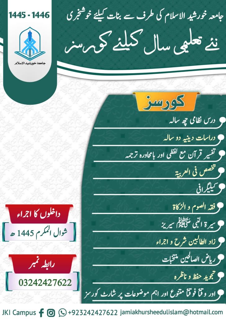 Courses (Dars-e-Nizami) Admission Open For any Query: Contact# 03082252882 D24/1,block 17 near National stadium Gulshan iqbal.karachi. info@jkiacademy.comAdminMarch 17, 2024