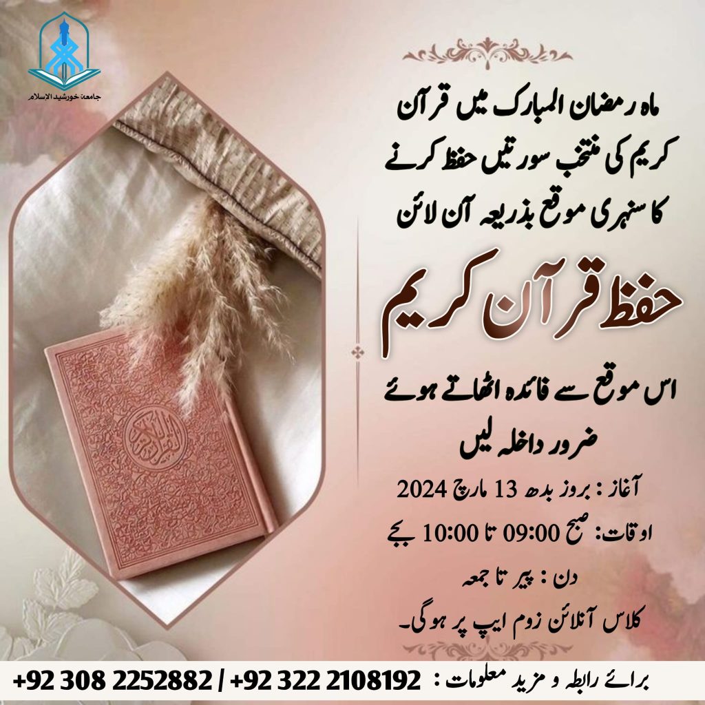 Courses Hifz-e-Quran Admission Open For any Query: Contact# 03082252882 D24/1,block 17 near National stadium Gulshan iqbal.karachi. info@jkiacademy.comAdminMarch 17, 2024