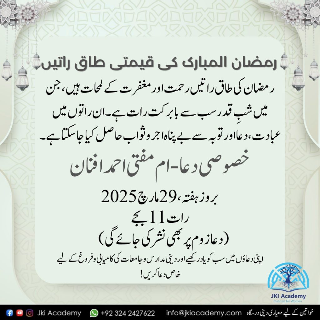 Event Importance of Dua For any Query: Contact# 03082252882 D24/1,block 17 near National stadium Gulshan iqbal.karachi. info@jkiacademy.comAdminJuly 25, 2024